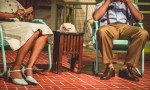 Joe peering through screen door